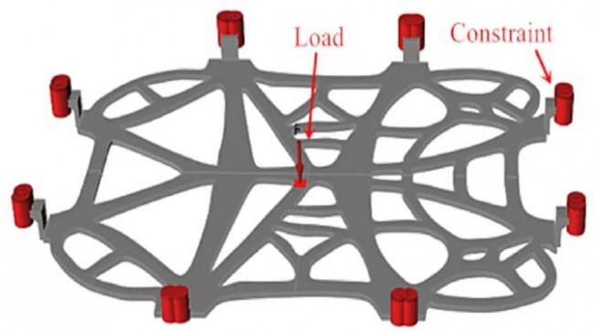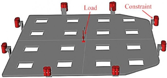 ▲電動汽車電池拓?fù)鋬?yōu)化托盤的負(fù)載和約束位置