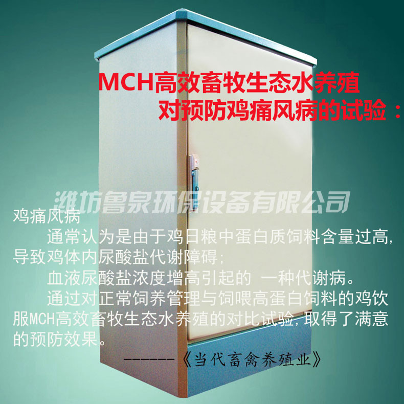 用MCH生態(tài)水養(yǎng)雞,能有效的預(yù)防雞痛風(fēng)病,減少雞的發(fā)病率和死亡率,取得了滿意的效果。